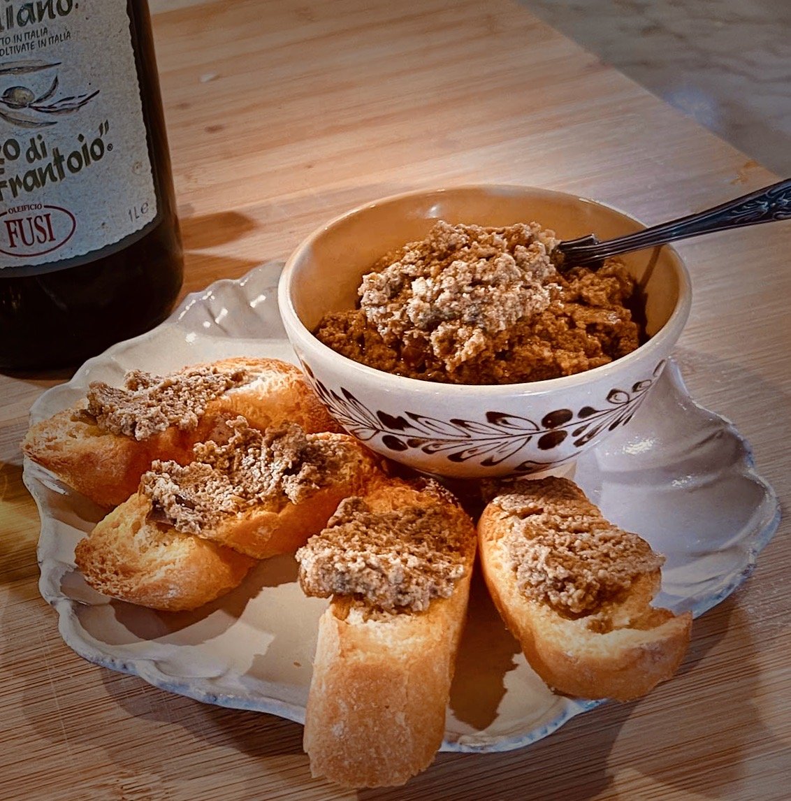 Spread about 2 tablespoons of tapenade on a crostini. Enjoy.