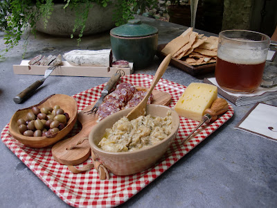 Last Sunday I was super excited to taste beer made by one of our dear friends Chris Mowry, he is a university professor, and scientist (he studies monkeys), and a musician, + a super nice guy. Chris is married to one of my favorite editors Lisa Mowry. She and her family joined us here for sunday supper. Chris brought Monkey beer, his very own brew, and I put together antipasti, of Pinestreet Market goodies + local cheese, olives and flatbread.